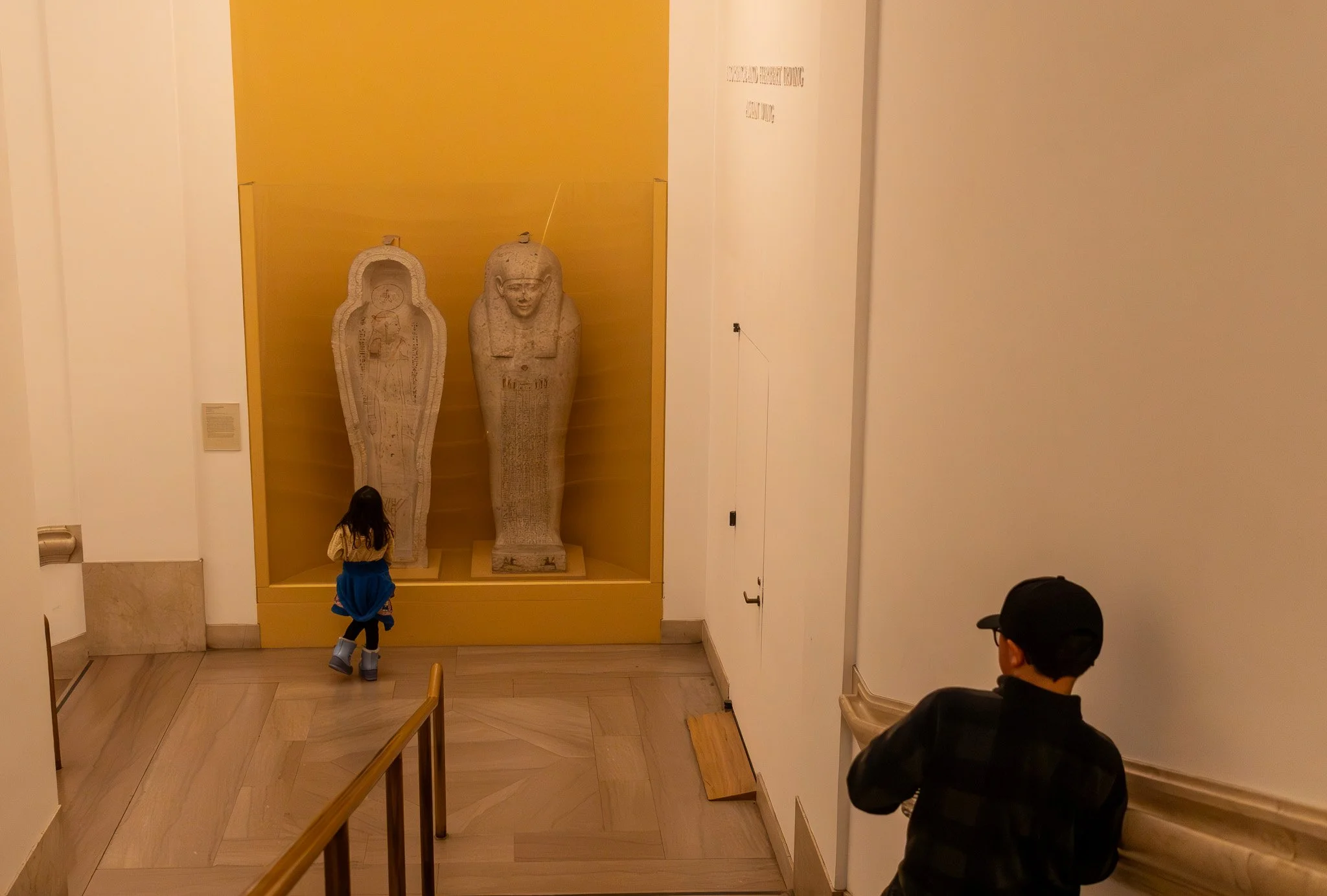 Kids looking at the Stone Coffin of Payuhor at the Met.