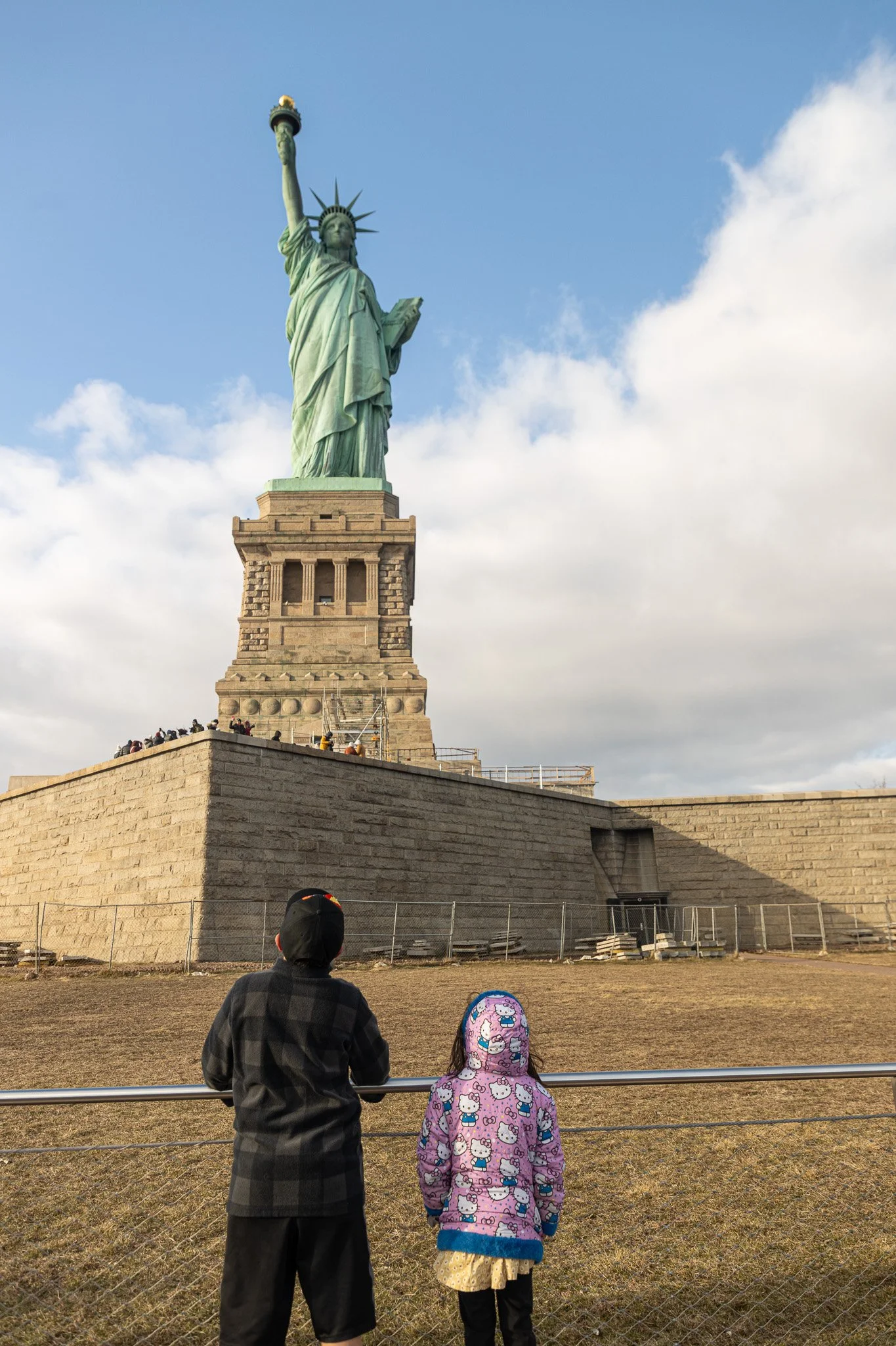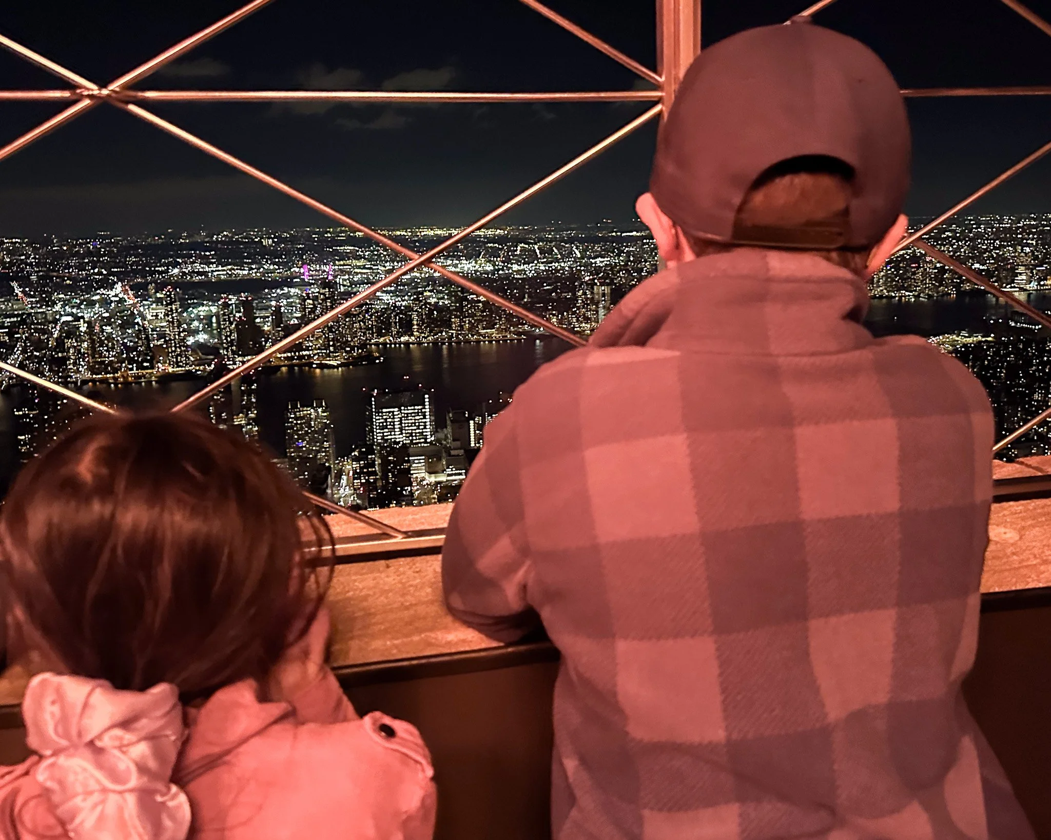 Kids looking down at New York City from the Empire Sate Building.
