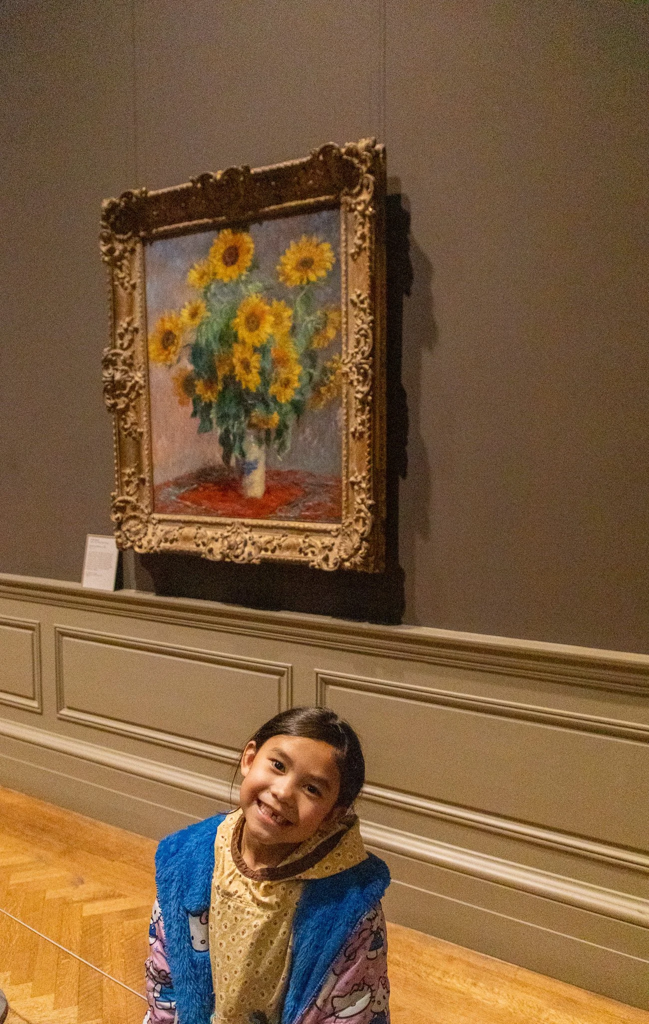Olivia posing in front of Monet's "Bouquet of Sunflowers"