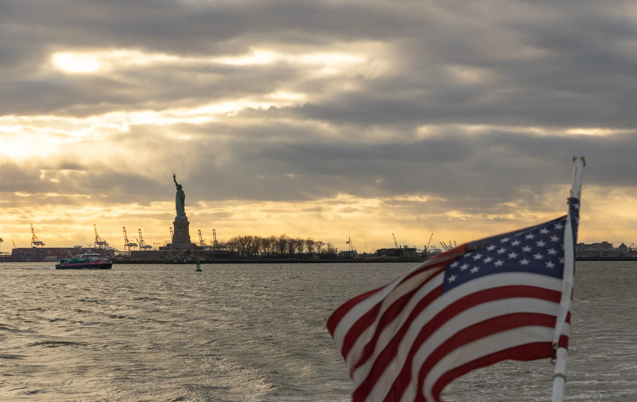 Windy day heading to the Statue of Liberty.